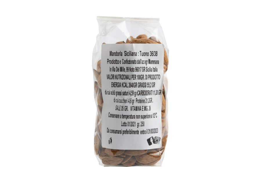 Mandorle Sicilia Tipologia Tuono dell’Azienda Agricola Mammana della provincia di Siracusa. Prodotto al naturale, varietà poco ricca di olio con guscio semi tenero e sensazione al palato molto soffice.